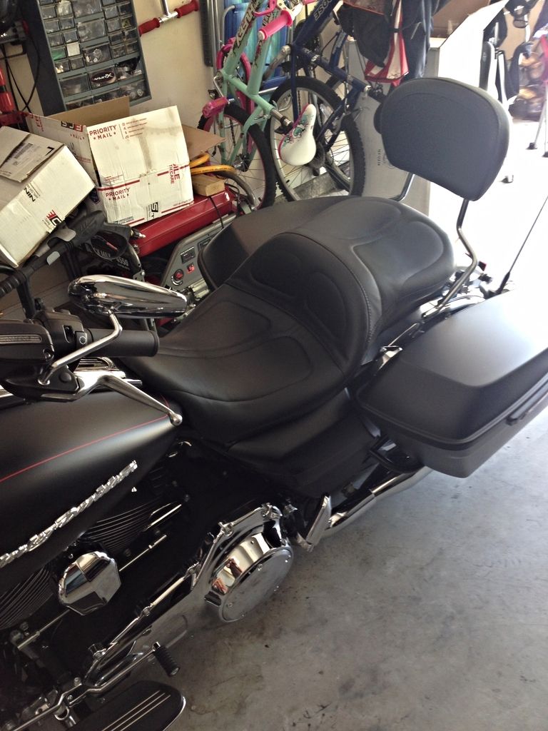 As you will see in the photos in the next few replies below, Le Pera did exactly what they set out to do. The Maverick stitched seat is a beautiful seat whose lines seem to flow perfectly with my 2013 Road Glide Custom CVO. We use the HD high backrest for my wife and even with that on it looks great. The HD low backrest was too low and didn't look good at all so that just got sold. I took these photos yesterday while my son and I were out looking at Jeeps for him. At one point he looked over at my bike and said, "Man, dad - that's a great looking bike! I'm surrounded by my dream vehicles and I keep looking over at your bike!!" Hi praise from a young guy that rides a Ducati!